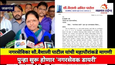 - जळगाव महापालिकेत पारदर्शकतेसाठी पुन्हा सुरू होणार ‘नगरसेवक डायरी’? सौ. वैशाली पाटील यांची महापौरांकडे आग्रही मागणी