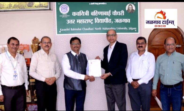 जळगाव, दि.2 (धर्मेंद्र राजपूत) – कवयित्री बहिणाबाई चौधरी उत्तर महाराष्ट्र विद्यापिठातर्फे जळगाव येथील ज्येष्ठ पत्रकार दिलीप मनोरमा केशवलाल तिवारी यांना पीएच. डी. पदवी (डॉक्टर ऑफ फिलॉसॉफी अर्थात विद्यावाचस्पती) प्रदान करण्याचे पत्र (नोटीफिकेशन)  प्रदान करण्यात आले. विद्यापिठाचे कुलगुरू प्रा. विजय माहेश्वरी यांच्या हस्ते श्री. तिवारी यांना याबाबत अधिकृत पत्र प्रदान करण्यात आले. यावेळी प्रकुलगुरू प्रा. एस. टी. इंगळे, व्यवस्थापन परिषद सदस्य राजेंद्र नन्नवरे, मार्गदर्शक प्रा. डाॅ. सुधीर भटकर, संशोधन विभागाचे सहायक कुलसचिव प्रविण चंदनकर, डाॅ. सोमनाथ वडनेरे, सुभाष तळेले उपस्थित होते.