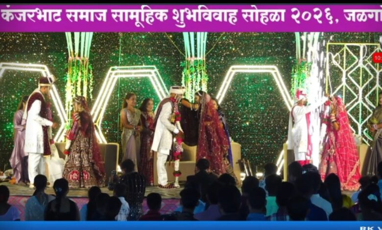 जळगाव:(Jalgaon Times) सामाजिक एकोपा वाढवण्यासाठी आणि खर्चिक विवाहांच्या परंपरेला फाटा देण्यासाठी जळगाव शहरात एक स्तुत्य उपक्रम राबविण्यात आला. कंजरभाट समाज जळगाव आणि नवयुवक कंजरभाट समाज मित्र मंडळ यांच्या संयुक्त विद्यमाने शहरात प्रथमच भव्य-दिव्य सामूहिक विवाह सोहळ्याचे आयोजन करण्यात आले होते. या सोहळ्यात समाजातील ६ वधू-वरांचे विवाह पारंपरिक आणि धार्मिक विधींनुसार मोठ्या उत्साहात पार पडले.