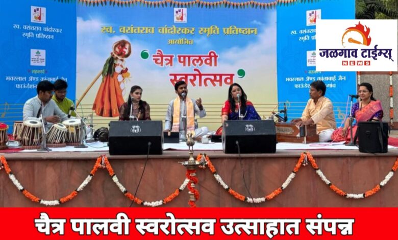 जळगांव(धर्मेंद्र राजपूत) दि.19 स्व. वसंतराव चांदोरकर स्मृती प्रतिष्ठानच्या वतीने आयोजित “चैत्र पालवी स्वरोत्सव” मैफल गुढी पाडव्याला जळगावातील महात्मा गांधी उद्यानात उत्साहात संपन्न झाली. भक्ती गीते, अभंग, नाट्यगीत व सुगम सांगितले नटलेली ही मैफल उत्तरोत्तर रंगत गेली.