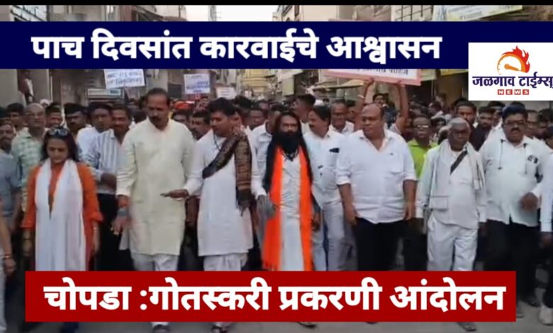 चोपडा :गोतस्करी प्रकरणी आंदोलन, पाच दिवसांत कारवाईचे आश्वासन