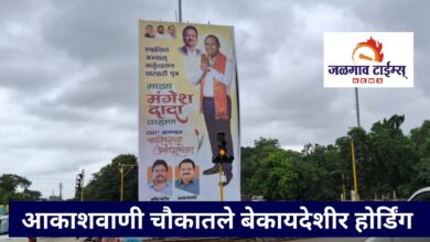 जळगाव:आकाशवाणी चौकात बेकायदेशीर होर्डिंग्स; नागरिकांच्या सुरक्षतेच काय काय?